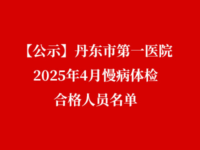按照丹东市医疗保障局、丹东市医保中心门诊慢特病体检工作统一部署,现将丹东市第一医院2025年4月门诊慢特病集中体检认定合格名单进行公示。本次公示的体检合格人员于2025年5月起享受相应门诊慢特病待遇,请自行查询。