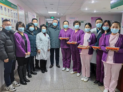 为了能让他们在医院也能过一个温馨祥和的春节,除夕夜,院领导没有忘记这些坚守在岗位,默默奉献的医护人员,通过院工会为临床一线送去热气腾腾的饺子和福气满满的大礼包。