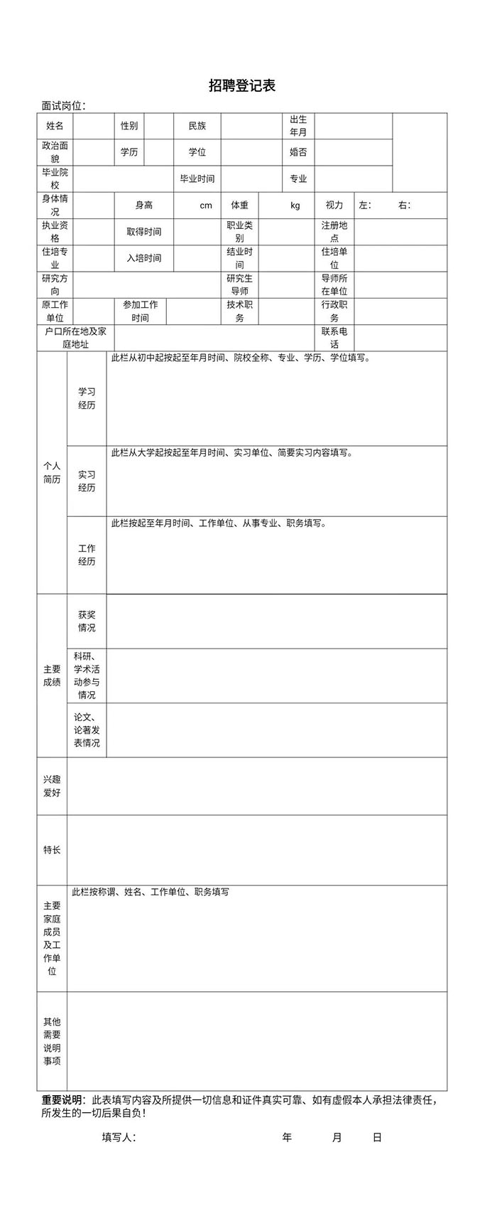 附:招聘登记表