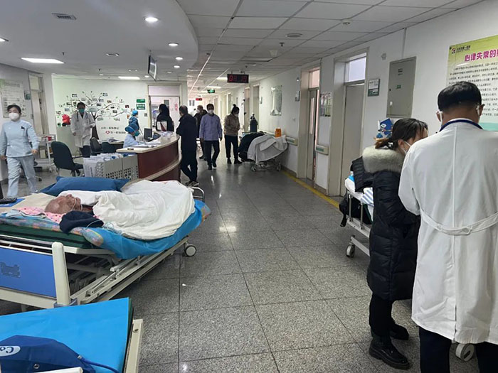 众所周知,冬季是心血管疾病的高发季节,且各种流行性疾病传播迅速,收治到心内二科病房的急危重症病人越来越多。科室医护人员克服各种困难,坚持轻伤不下火线,只要吃药后高烧能退下来,大家基本上就不休息。隋云霞主任介绍说:全科医护人员基本上都“阳”了一遍了,但即使是在发烧最厉害的那两天,大家也没有说要请假休息。科室收治的患者已经达到80多位,护士们基本上都是带着病在岗工作的。一天夜里,由于用氧量剧增,需要临时调运氧气瓶。本来就身单力薄的护士于文雅还烧着高烧,为了让患者能够早一分钟用上氧气,她招呼来医院探望自己的爱人,让爱人帮着把氧气第一时间送到患者床旁。