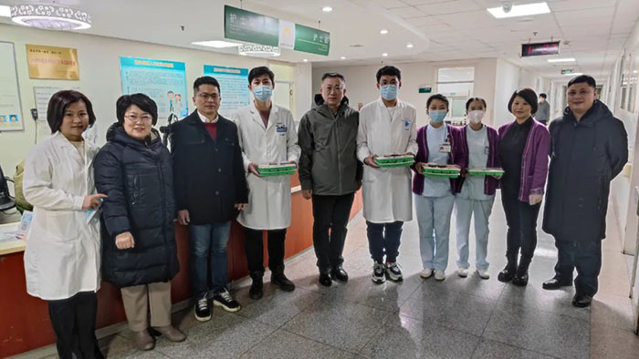 在除夕当天傍晚,院领导逐个楼层走访慰问了坚守在临床一线的值班人员并送上了热气腾腾的水饺和亲切的问候与深切的祝福,同时也感谢医务人员们舍小家顾大家,坚守在工作第一线。