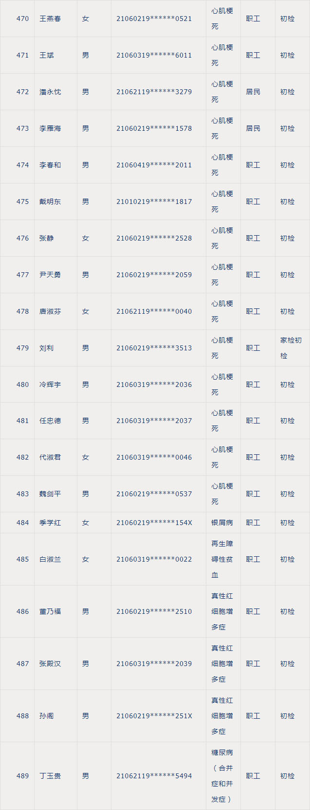 慢病体检合格人员名单公示如下: