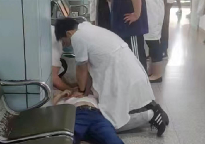 6月16日上午,市民周先生因身体不适,来到我院就诊。在就诊过程中,周先生突发心脏骤停,昏迷晕倒在门诊诊区。事发突然,抢救刻不容缓!事件发生后,诊区导诊人员立刻通知内科门诊医生,同时疏散现场围观群众,维持现场秩序。我院贺宇峰、王德志等门诊医生闻讯疾步而来,立刻实施心肺复苏,同时联系急诊科、心内科等相关科室,提前做好抢救准备。