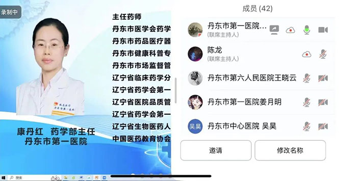 本次会议邀请了丹东市中心医院妇儿院区药学部车晶玉主任、丹东市中医院关巍主任、丹东市第六人民医院王晓云主任等多位药学专家参加会议。会议的培训方向主要围绕老年人、肝肾功能不全人群、儿童、妊娠及哺乳期妇女等特殊人群用药以及不良反应上报流程等内容展开。我院药学部主任康丹红主持会议。
