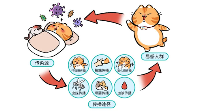 传染源是指携带并且能够排出病原微生物的人和动物,可以是患者、无症状感染者,也可以是受感染的动物。易感人群是指对某种传染病缺乏特异性免疫力的人群。传播途径是指病原微生物从传染源排出后进入易感人群所经过的途径,常见的传播途径有呼吸道传播、消化道传播、接触传播、虫媒传播、血液传播和母婴传播等。有些传染病可通过多种途径传播。