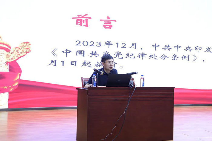 党课上,丹东市纪委常委、市监委委员,二级调研员杨景毅同志,结合医疗行业特点,深入阐述了《中国共产党纪律处分条例》修订的总体情况,重点解读了条例的新增部分。通过详细解读各项条款,以及引用相关医疗领域的违纪案例,通过对典型案例的剖析,使党员们更加清晰地认识到违反党纪的严重后果,进一步增强了对纪律的敬畏之心,为全体党员敲响了警钟。