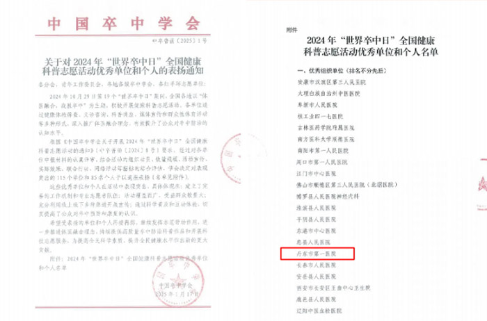 近日,中国卒中学会发布了《关于对2024年“世界卒中日”全国健康科普志愿活动优秀单位和个人的表扬通知》,我院神经内科凭借其在卒中防治和健康科普工作中的卓越表现,被评为“优秀单位”称号,辽宁省共有4家医院获此殊荣。荣誉的取得,不仅是对我院卒中防治工作的肯定,更是对我院健康科普教育能力的高度认可。