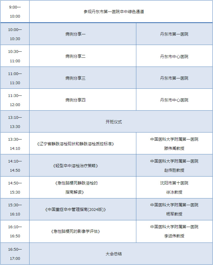 首期培训班(含开班仪式)将于2025年5月7日在丹东第一医院举办。本期培训将邀请来自国内、省内脑血管病领域的著名专家学者进行学术讲座。培训内容涉及缺血性卒中静脉溶栓领域最新研究进展、指南解读、质控指标、卒中中心建设、重症卒中患者的管理等热点问题。培训班同时设有典型案例分析和现场参观环节,为参加培训学员开拓视野、提升理论知识的同时,强化感性认识,提高丹东及周边地区静脉溶栓技术的整体开展质量及水平,让更多患者受益。