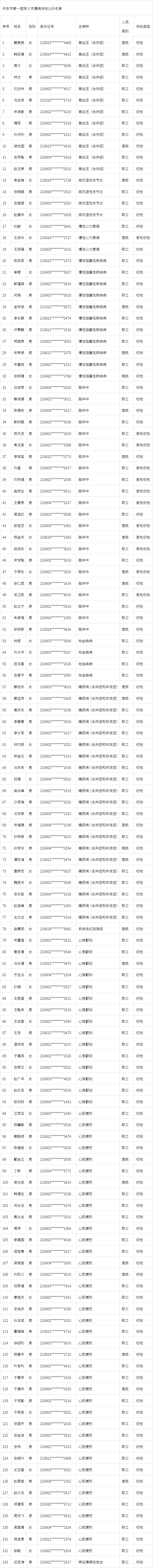 三月慢病体检公示名单