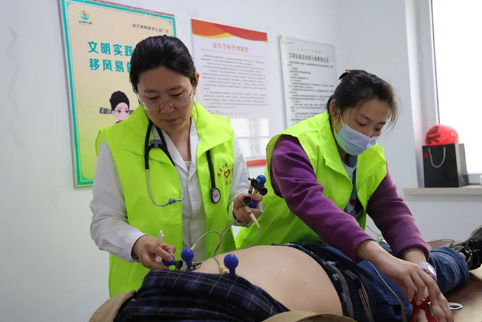 活动现场,医护团队分工协作,为居民提供了疾病咨询、健康科普讲解、心电图检查,以及血压和血糖测定等健康服务。医护人员耐心解答社区居民的健康咨询,细致操作仪器、耐心记录数据,为居民排查心脏健康隐患。