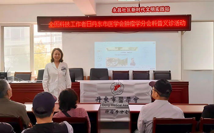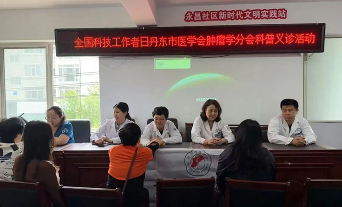 为积极响应第九个全国科技工作者日“矢志创新发展,建设科技强国”的宣传主题,助力推动肿瘤相关医学知识普及,提升公众科学文化素养,我院肿瘤内科医护团队及部分市医学会肿瘤学分会委员,在市医学会肿瘤学分会主任委员、我院肿瘤内科主任樊金霞的带领下,于5月27日来到振兴区永昌社区服务中心,开展科普宣教健康义诊活动,为社区居民带来肿瘤防治知识科普讲座。