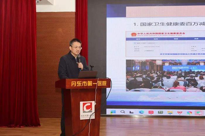 辽宁省神经内科专业质控中心主任、中国医科大学附属第一院滕伟禹教授在致辞中表示:丹东市神经内科质控中心、丹东市第一医院神经内科,多年来始终保持高效率的开展各项工作,在基层临床工作中充分发挥了带头和指向作用,极大的带动和指导了丹东地区各级医院全面开展脑卒中防治等重点工作。希望通过此次适宜技术培训班,更好地推动各医疗单位积极开展溶栓技术,让各级“卒中中心”都能得到高质量发展。