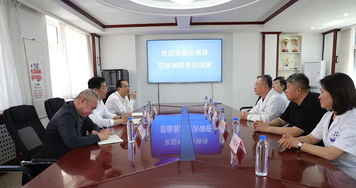 6月5日,丹东市政协党组书记、主席陈福茂,市政协委员委主任白雪峰、教科卫体委主任孙景波,来到我院走访调研工作。我院党委副书记、副院长吴瑶强带领徐超兵、于波、杨平、付春娟等市政协委员,共同参加了调研座谈会议。
