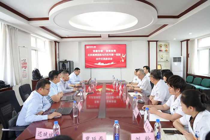 7月18日,北京高博医疗集团副总裁、北京高博医院执行院长尚华率李飞侠、汤云杰、陈威等医院核心管理团队一行到访丹东,与我院党委书记、院长李涛及院领导班子、相关科室负责人开展座谈交流,共同探讨党建与医疗业务深度融合新发展。