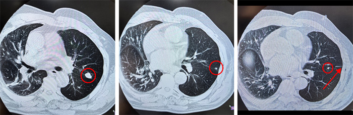 病例特点:李某,76岁,半年前发现右肺结节,行胸腔镜右肺上叶尖段切除术,病理确诊肺原发骨肉瘤,经3周期化疗后,患者拒绝继续治疗,在随诊过程中发现左肺3个结节且逐渐增大,位置集中在左肺上叶尖后段的c亚段和部分上舌段,患者手术意愿强烈。