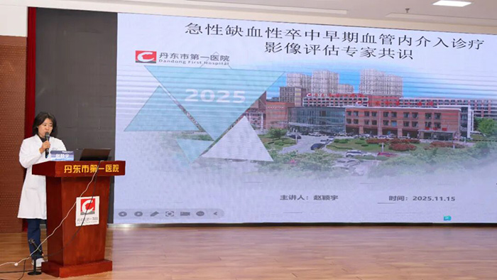 本次会议主席、丹东市神经内科质控中心主任、我院神经内科主任万里姝在致辞中表示:神经介入再灌注治疗在急性脑血管疾病,尤其是急性缺血性脑卒中的救治中地位极其重要。希望通过本次继续教育项目,推动我市神经介入再灌注技术实现规范化诊疗与持续发展,让更多江城患者受益。