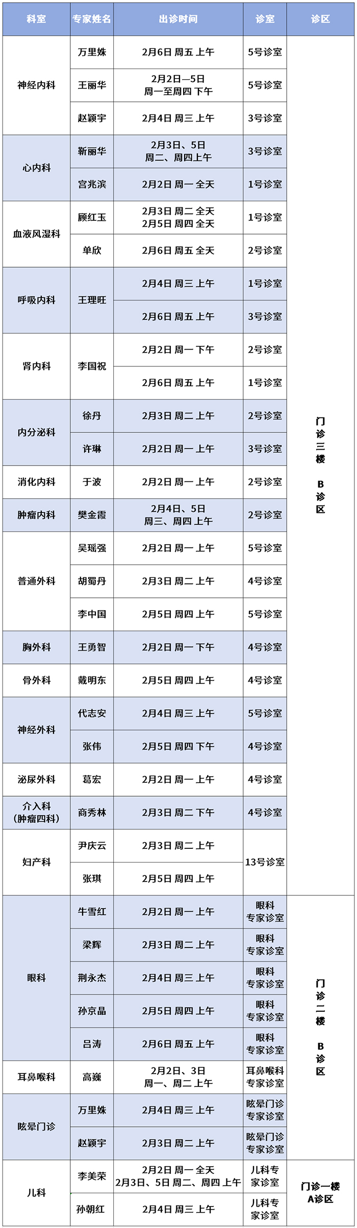 专家门诊本周开诊安排