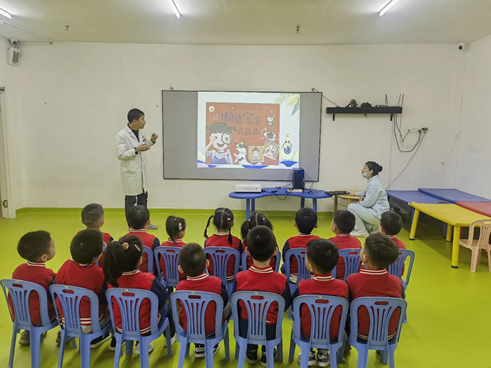 眼科赵连凯副主任走进课堂,以“共同呵护好孩子的眼睛,让他们拥有一个光明的未来”为主题,通过图片、绘本故事等形式,向孩子们普及科学用眼以及预防近视的相关知识。