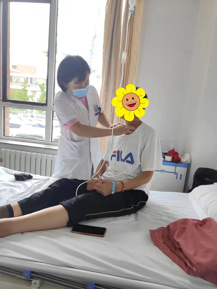 一位86岁的晚期肺癌患者,在经历了多次放疗、化疗等综合治疗后,病情仍未得到明显控制,随即转入我院放疗一科接受进一步治疗。在治疗过程中,姜香玉副主任与医护人员同患者及家属保持密切沟通,为他们提供心理安慰和支持,传递出深切的关怀和关爱。在她的耐心沟通和引导下,患者家属焦急的情绪逐渐平复,重病的老人放下心理包袱,积极配合治疗。在这融洽的医患关系氛围中,患者、家属、姜香玉副主任带领的医疗团队,三方形成了强大的合力,共同朝着“减轻患者病痛,誓让病情好转”这一目标齐心努力。经过几日专业的治疗,老人的病痛明显减轻,病情得到了有效控制。患者家属拉住姜香玉副主任的手不断道谢,激动和感谢之情溢于言表。