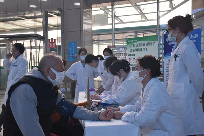 麻醉基地秉承着手术室内的培养和手术室外的培训结合的宗旨,这次结合中国麻醉周,麻醉科开展了义诊活动,让住培医生充分的参与其中。今年的主题是“生命至重,大医精诚——深究病因讲麻醉,诚心实意帮患者”。3月28日下午,麻醉科主任李卫东、副主任原忠伟及疼痛科副主任金日,带领麻醉科医疗团队及住培医生,开展了麻醉科普宣传活动,为前来参加活动的患者及家属进行相关疾病义诊及解答医疗咨询,旨在提高公众对麻醉的认知,消除对麻醉的误解和恐惧。