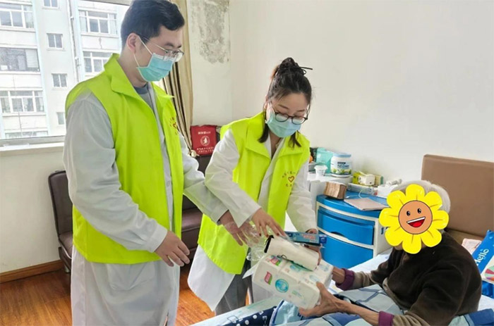 抵达养老院后,学员们迅速分组,跟随临床医生为老人们进行健康检查,包括测量血压、血糖等常规项目,对每位老人的身体状况都进行了详细记录。