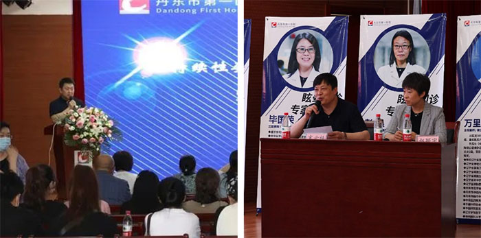 我院万海燕副院长致辞。她对我院眩晕诊疗部成立6年来所取得的工作成绩给予了充分地肯定,并希望大家能够再接再厉,继续为江城患者造福,推动丹东地区眩晕诊疗工作的全面发展!