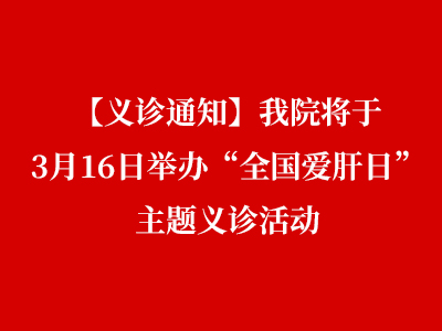 今年的3月18日是第26个全国爱肝日,宣传主题为“遏制肝硬化,远离肝癌”,旨在普及肝脏疾病防治知识,倡导“早预防、早发现、早诊断、早治疗”的健康理念,切实提升肝癌早筛率与患者生存率和生存质量。为积极响应活动号召,我院将于3月16日举办“全国爱肝日”主题义诊活动。