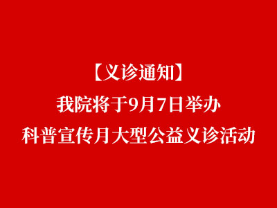 为积极响应科普宣传月活动,切实将优质医疗服务延伸至群众身边,提升公众健康知识与自我保健能力,我院决定组织开展大型公益义诊活动,现将具体事宜通知如下