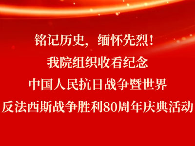 今天是中国人民抗日战争暨世界反法西斯战争胜利80周年纪念日。在这个特殊的日子里,我院组织全院职工以网络直播形式收看“纪念中国人民抗日战争暨世界反法西斯战争胜利80周年庆典”,重温历史,缅怀先烈,感受国家强盛,激发爱国热情。
