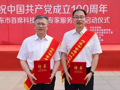 我院党委副书记、副院长吴瑶强,副院长王勇智在内的20名具有较高学术造诣、热爱科技传播工作、组织协调能力较强的科技工作者登台领取“丹东市首批首席科技传播专家”聘书。
