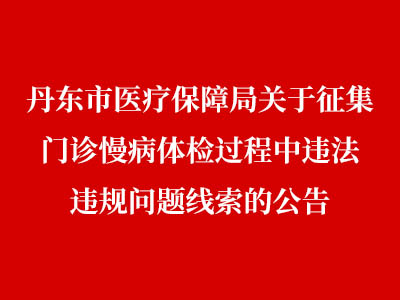 我市2020年医保门诊慢性病体检工作即将结束。近期,市医疗保障局将对门诊慢性病体检工作进行复核,现面向社会公开征集门诊慢性病体检过程存在的违法违规及徇私舞弊等问题线索。