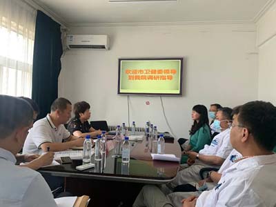 7月22日下午,丹东市卫健委党委副书记、副主任王冰,组织人事科科长宋震,宣教科科长王传力及科教干事等一行5人到我院开展人才调研工作。