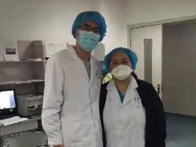 我是丹东市第一医院重症医学科医生兰天,作为我市援鄂医疗队的一员,这次来支援武汉疫区,我体会到了在一线“战疫”保卫人民健康安全的自豪感,还有一个惊喜就是能与我母校的老师张凤香(现任锦州医科大学附属第一医院重症医学科2病区主任)一起并肩作战。