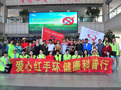 2018年6月3日,丹东市第一医院脑卒中俱乐部举办了主题为“爱心红手环,健康科普行”大型公益活动。由神经内科医护人员组成的红手环志愿者,组织并带领俱乐部的卒中患者及家属参加了本次活动。