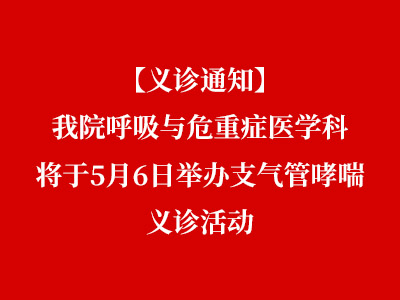 每年5月的第一个周二是“世界哮喘日”,今年的活动主题是“让吸入治疗惠及所有哮喘患者”。为了提高公众对支气管哮喘吸入治疗的认知,帮助患者更好地管理疾病,提升患者的自我管理能力,我院呼吸与危重症科将于5月6号举办支气管哮喘主题义诊宣传活动。