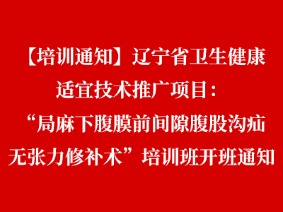 为进一步提升辽宁省基层医疗机构对腹股沟疝疾病的诊疗水平,推广“局麻下腹膜前间隙无张力修补术”这一安全、经济、高效的适宜技术,规范手术操作流程,辽宁省卫生健康委联合辽宁省疝与腹壁外科诊疗中心,定于3月28日举办专题技术培训班。现将有关事项通知如下。