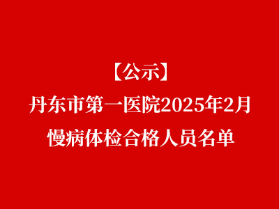 按照丹东市医疗保障局、丹东市医保中心门诊慢特病体检工作统一部署,现将丹东市第一医院2025年2月门诊慢特病集中体检认定合格名单进行公示。本次公示的体检合格人员于2025年3月起享受相应门诊慢特病待遇,请自行查询。