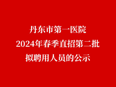 根据《事业单位人事管理条例》(国务院令第652号)《辽省事业单位公开招聘人员办法》等规定,经考核、体检、考察等环节,现将丹东市第一医院2024年春季直招第二批拟聘用人员予以公示(详见附件),公示期为7个工作日。公示期间如有异议,请向丹东市第一医院人教部反映。