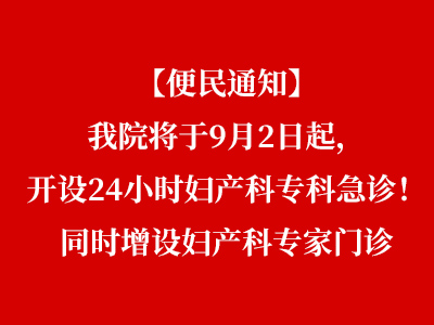 为提升我院整体医疗服务能力,给广大江城女性患者提供便捷优质的妇产科专科诊疗服务,满足不同群体的就医需求,经过积极筹备,我院妇产科“24小时急诊”和“专家门诊”,将于9月2日起正式开诊。