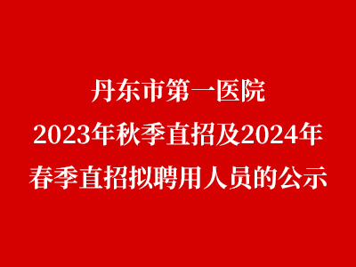 根据《事业单位人事管理条例》(国务院令第652号)《辽省事业单位公开招聘人员办法》等规定,经考核、体检、考察等环节,现将丹东市第一医院2023年秋季直招及2024年春季直招拟聘用人员予以公示(详见附件),公示期为7个工作日。