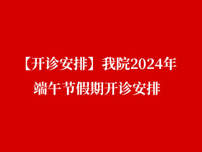 我院2024年端午节假期为2024年6月8日至10日,共3天。为方便节日期间患者就医,最大限度满足广大市民的诊疗需求,我院“无假日门诊”在假期期间正常开诊!