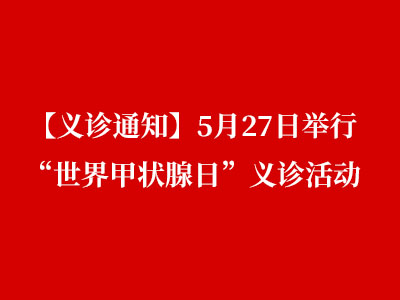 我院普外一科与内分泌科联合,将于5月27日,在“世界甲状腺日”来临之际,举行甲状腺疾病义诊活动。