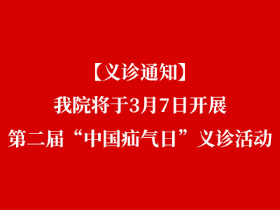 3月7日是中国疝气日。为了提高广大市民群众对疝气的认识,我院将于2024年3月7日上午,开展第二届“中国疝气日”联合义诊活动,为广大市民提供免费的疝气相关疾病咨询和检查服务。