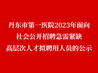 根据《事业单位人事管理条例》(国务院令第652号)《辽省事业单位公开招聘人员办法》等规定,经考核、体检、考察等环节,现将丹东市第一医院2023年面向社会公开招聘急需紧缺高层次人才拟聘用人员予以公示(详见附件),公示期为7个工作日。