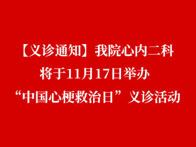 “中国心梗救治日”来临之际,我院心内二科将于11月17日在我院八道院区门诊大厅举办冠心病、急性心肌梗死义诊活动。