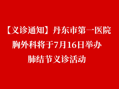 为贯彻落实《健康中国2030规划纲要》,提高我市肺结节检出率和治愈率,我院胸外科暨丹东地区肺结节诊疗会诊中心、肺癌诊治会诊中心,将于7月16日在丹东市第一医院门诊大厅举行肺结节义诊活动。届时,我院副院长、胸外科主任王勇智,副主任李林及科室医疗专家在活动现场为广大市民提供义诊服务。
