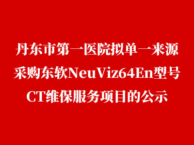丹东市第一医院拟申请单一来源采购东软NeuViz64En型号CT维保服务,现将有关情况公示如下: