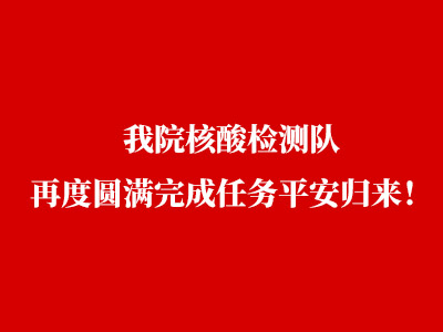 春回大地,战“疫”归来,元宝山下,英雄凯旋。4月21日,我院核酸检测队伍圆满完成核酸检测支援任务,结束医学隔离观察,顺利返院。