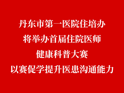 为深入贯彻落实"健康中国2030"规划纲要,提升住院医师健康科普能力,丹东市第一医院住培办近日正式下发通知,宣布将于近日举办首届"健康护航·医路同行"住院医师健康科普大赛。