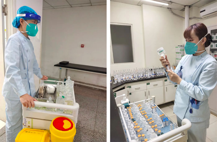 面对突然暴涨的工作量,神内二科的医生、护士都恨不能有分身之术。他们完全没有上下班时间概念,工作中争分夺秒,顾不得喝水,个个都像脚踏风火轮,来回在病房里奔跑,只为了能够保质保量完成各项治疗、护理工作。